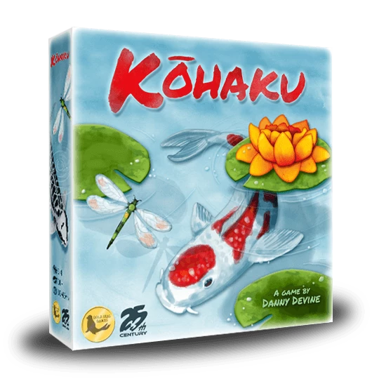 KohakuΒ is a peaceful koi-pond-building, tile-laying game. Each turn, players will draft both a Koi and Feature tile from the central pond board to place into their personal koi pond.