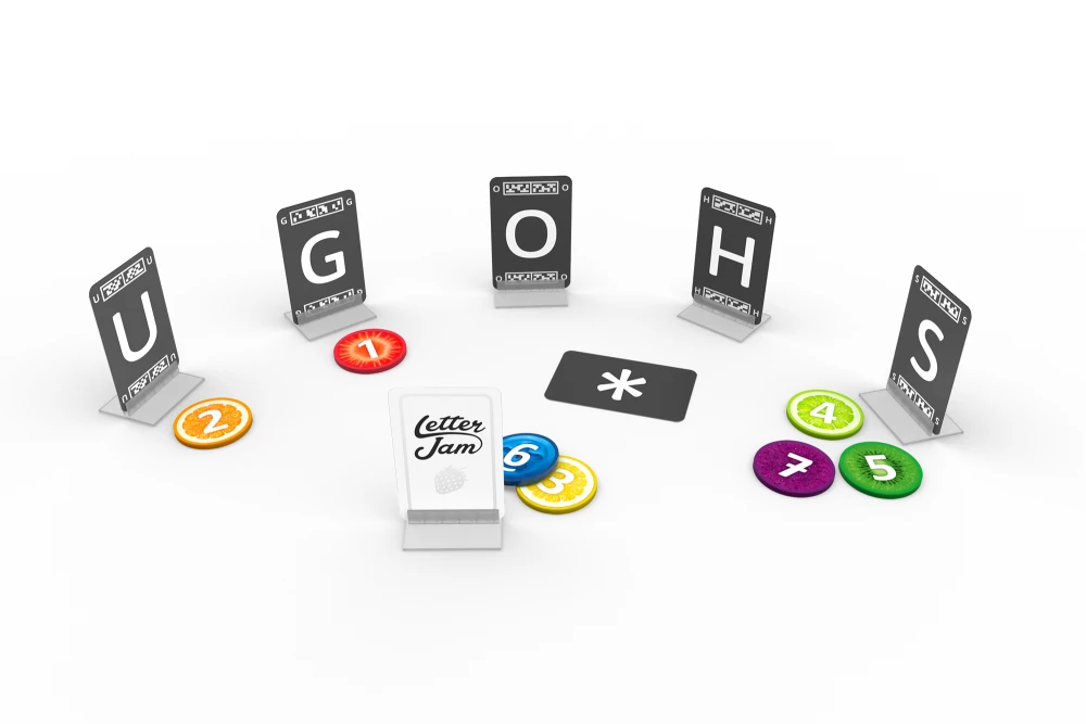 Letter JamΒ is a 2-6 player cooperative word game where players assist each other in composing meaningful words from letters around the table. The trick is holding the letter card so that itβs only visible to other players and not to you.