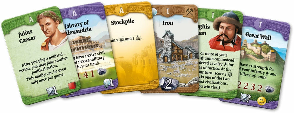 Through the Ages: A New Story of CivilizationΒ is the new edition ofΒ Through the Ages: A Story of Civilization, with many changes small and large to the game’s cards over its three ages and extensive changes to how military works.