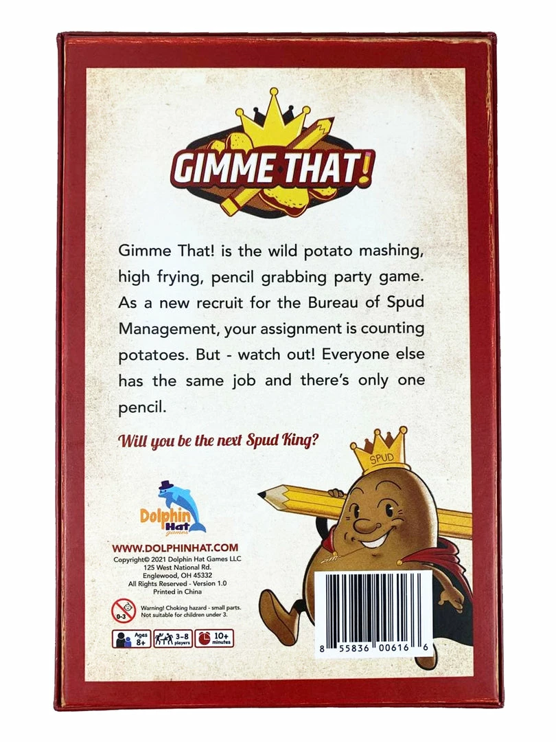 Gimme That! is the wild potato mashing, high frying, pencil grabbing party game!