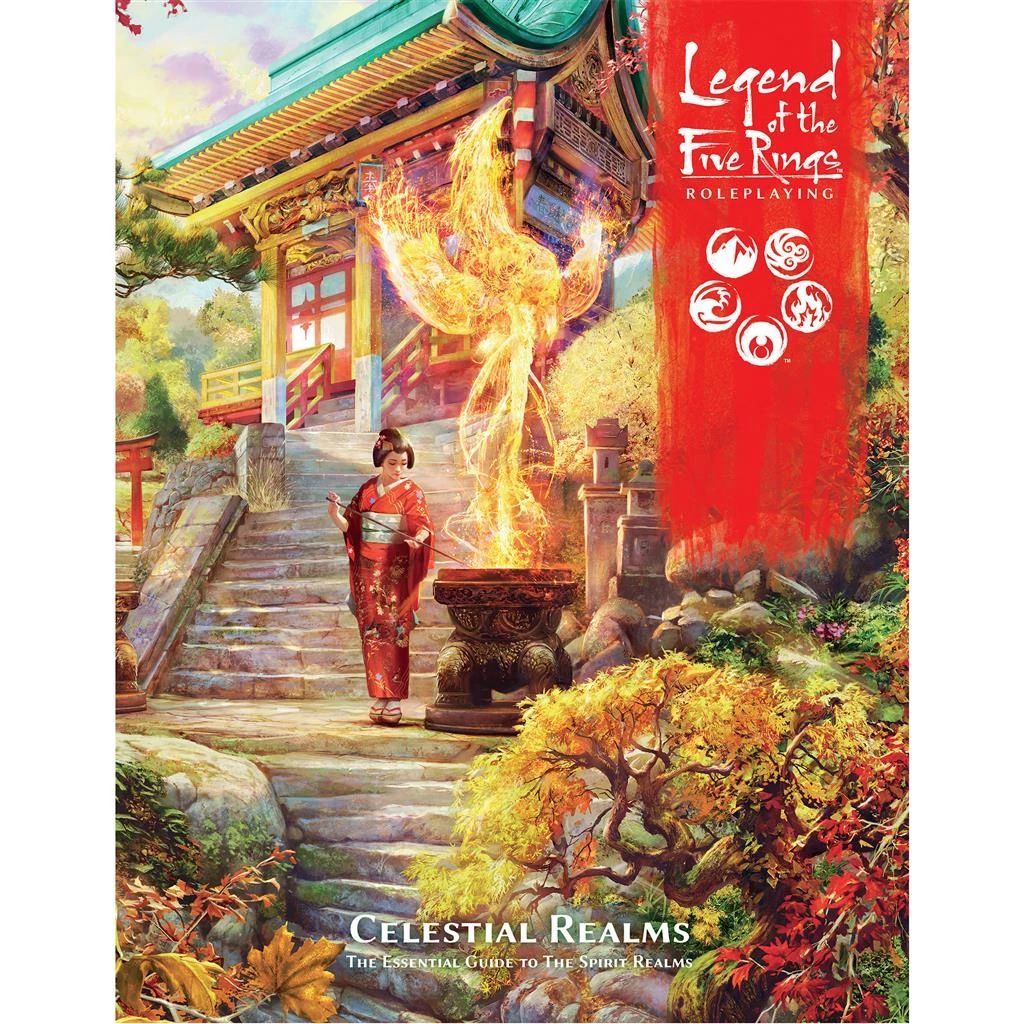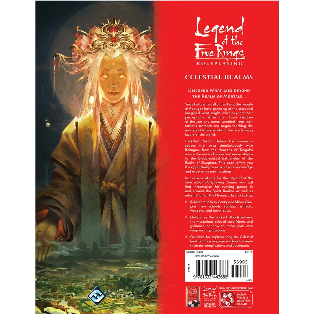 The realm of Rokugan is vast, stretching from the tainted Shadowlands in the south to the towering northern mountainsβyet it is only a small part of Ningen-dΕ, the Realm of Mortals. And Ningen-dΕ lies between all of the Spirit Realms, below the Celestial Court of Tengoku, beside the enchanted land of SenkyΕ, and above the torturous realms of the dead. In most circumstances, mortal samurai stay in Ningen-dΕ, but the influence of these other realms cannot be underestimated.The Celestial Realms sourcebook for Legend of the Five Rings Roleplaying boasts three chapters packed with information on the spiritual side of life in the Emerald Empire, covering the cosmology of the Spirit Realms and the Phoenix Clan’s roles as the caretakers of Rokugan’s soul. With new player options and adventure seeds sprinkled throughout, from the introduction of the Centipede Clan to the ancestral swords belonging to each of the Great Clans, this 144-page full-color sourcebook is an indispensable resource for Game Masters.