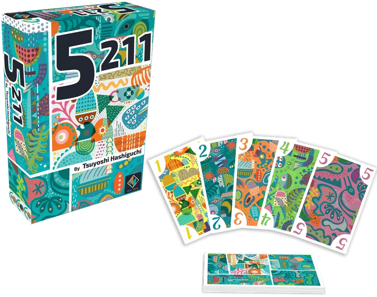5211Β is a fast-playing card game with a unique scoring method that rewards clever play!
