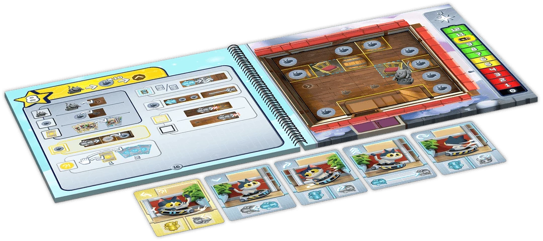 All players must work as a team to complete unique scenarios across a 20-page game book, with each scenario being quirkier than the last. Chase down naughty dust bunnies around the house with Gizmo! Slide into action and collect all the flags with Penny, the newest resident robot in Robotopia. Use movement cards to program robots across each map, but be careful! Players have only limited information as to which cards their teammates have played. Program wrong, and your robot could be left spinning its wheels in a corner. Move too slowly and your robo-friend will run out of battery!