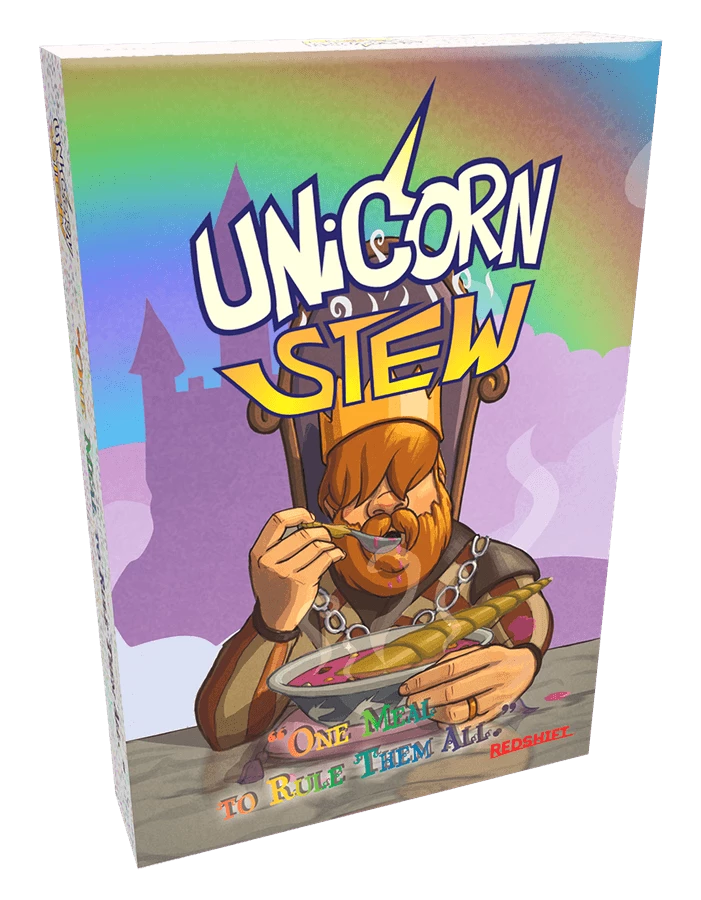 Each round a King’s Menu card is revealed, detailing what he is in the mood for. Each player selects an order card from their hand hoping it matches closer than the other players. All Order cards are revealed simultaneously, and the winner claims the Menu card. Doubles always cancel, and Unicorn stew will usually win but watch out for sabotage cards from other chefs. Clan three Menu cards of the same ingredient or 5 of the same fining option to win!
