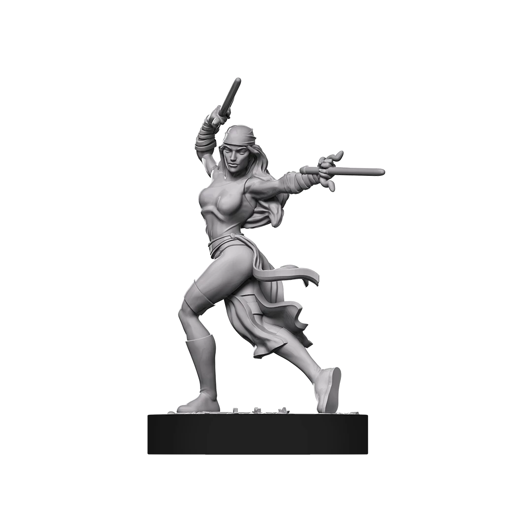 Unmatched: Hell’s Kitchen features three characters from the Marvel comics universe: Daredevil, Elektra, and Bullseye.