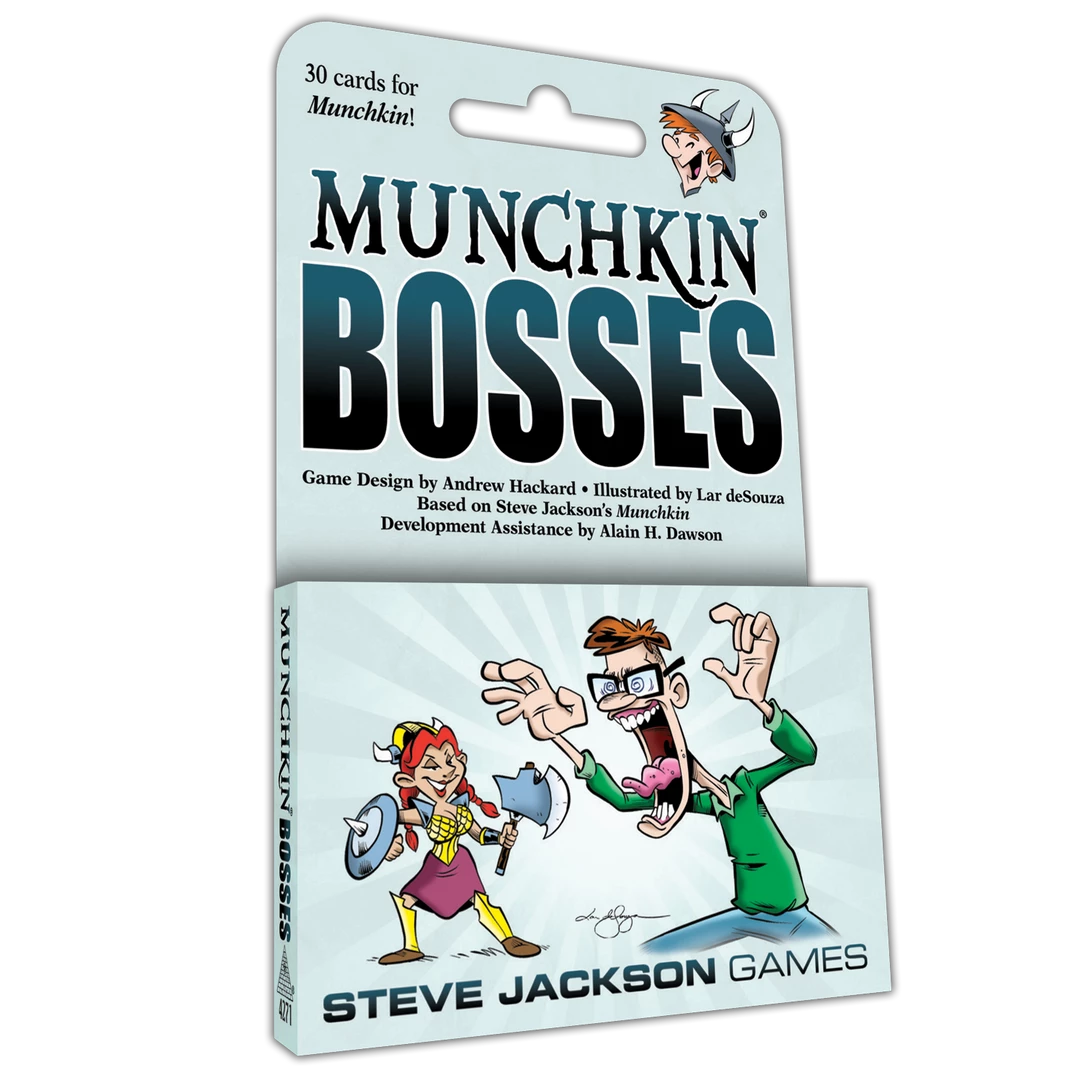 You’re pretty good atΒ MunchkinΒ β stabbed some friends, looted some rooms, killed a few monsters, won some games β and now you think you’re ready to take on the boss monsters. Well, look no further asΒ Munchkin BossesΒ has all of the epic monster boosters and munchkin buffers to provide any player with a battle royale (with cheese). Add this special expansion deck to anyΒ MunchkinΒ game and get ready to be bossed!